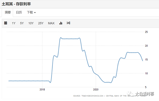 为了遏制通胀,土耳其央行过去一年不得不大幅度加息,一口气从6%的利率提高到17.5%利率。