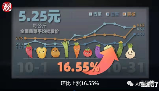 10月份蔬菜价格快速上涨,主要是因为10月初北方的蔬菜产区遭遇持续一个月的连绵大雨天气,甚至像山西和陕西都出现极端暴雨的气候灾害。