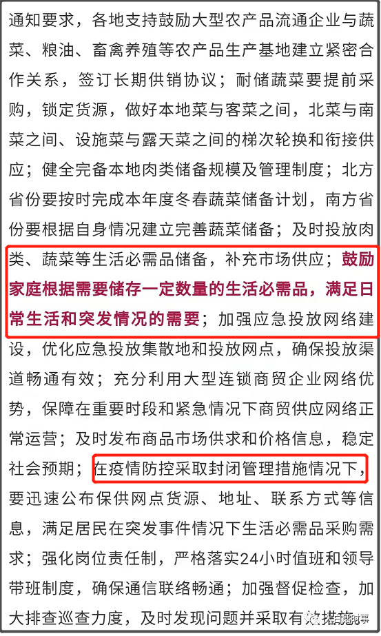 而“鼓励家庭根据需要储存一定数量的生活必需品”,只是这么多举措中,其中一个建议。