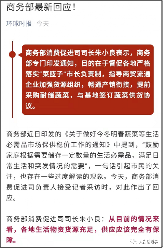 本来这个事情,本来商务部网站上的新闻标题是《商务部部署今冬明春蔬菜等生活必需品市场保供稳价工作》。