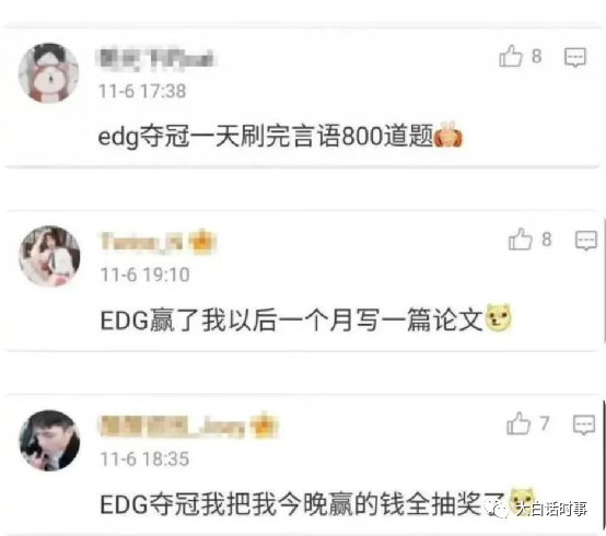 比如有人说“如果EDG夺冠,就把头剃光”,就真的在EDG夺冠后把头剃光。