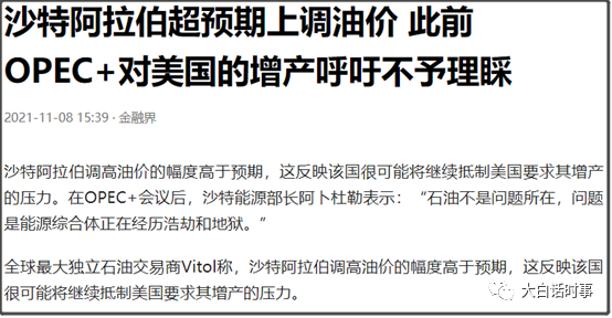 包括前几天,沙特甚至很针锋相对的直接超预期上调油价。