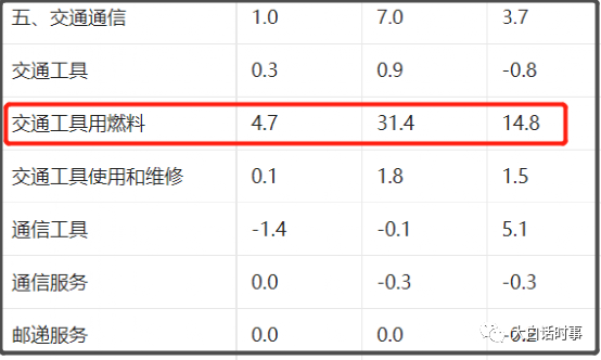而交通通信里,涨幅最大的是燃料,同比涨幅达到惊人的31.4%。