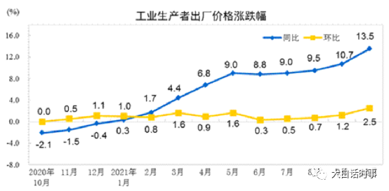 10月份的PPI工业出厂价格出现13.5%的同比增长,这是再次刷新这个涨幅记录。