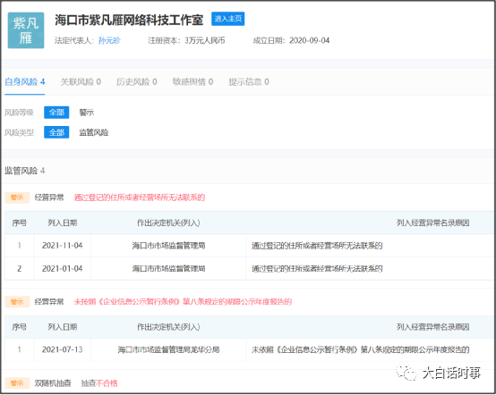 不过估计这也就是一个皮包公司,经营住所都被警示无法联系。
