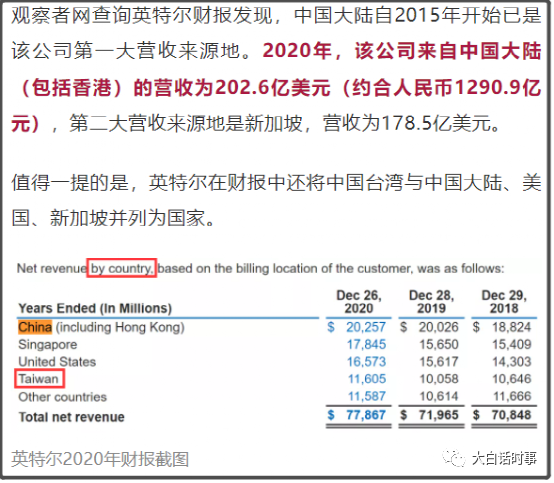但英特尔却这样肆无忌惮的我们,甚至有媒体发现,英特尔还在财报里,把对岸“并列”为国家。