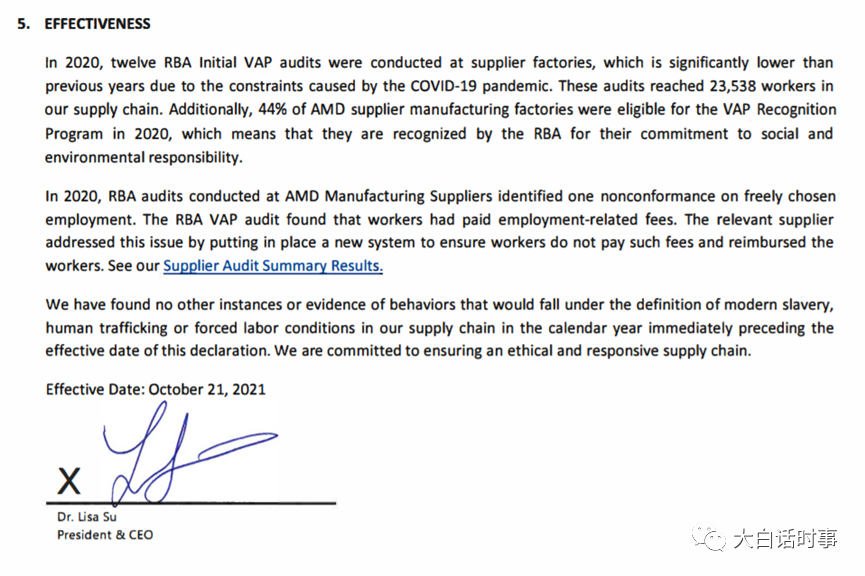 这份声明只是说,AMD 的供应链在过去一年里,没发现任何奴役、人口贩卖、强迫劳动的问题,并没有对我们指名道姓的污蔑。