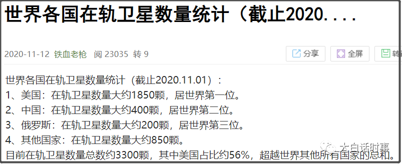 所以我们要警惕美国这种通过“卫星海”战术,所进行的“太空圈地”行为。
