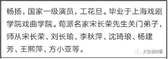 杨杨也是专业的京剧演员,是荀派名家宋长荣先生的关门弟子,专业性是毋庸置疑的。