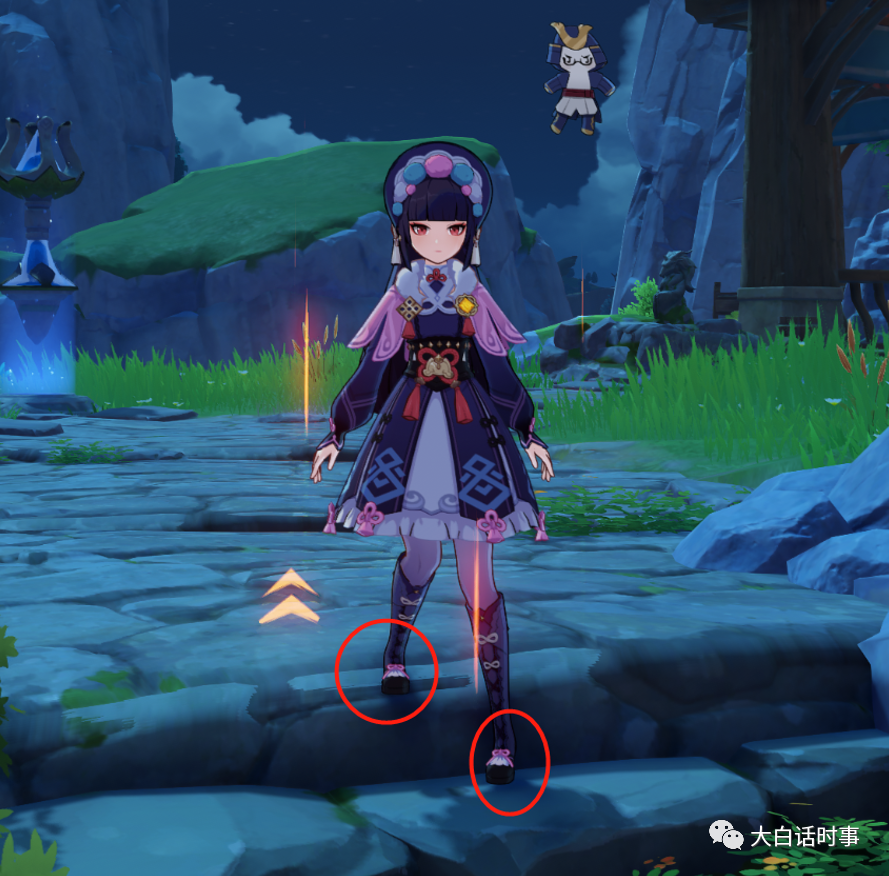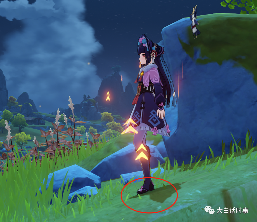 比如,原神你的角色,在站到有上下台阶的地方,就会采取不同的站立动作,并且确保脚掌和地面是持平的,不会有明显的穿帮感。