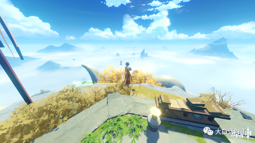 特别是我在没有看攻略的情况下,自己探索发现璃月最高处的一处隐藏场景,爬到最高处,看到这样的风景时,还是有一种久违的游戏探索乐趣。