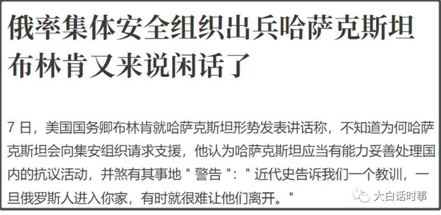 包括事情迅速平息,哈萨克斯坦已经宣布维和部队会在10天内分批撤出,这个直接打脸了布林肯前几天所谓的“一旦俄罗斯人进入你家,有时就很难让他们离开”的说法。