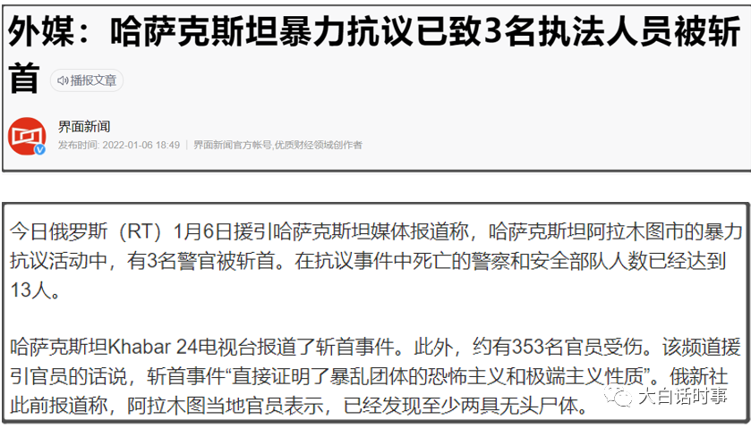 比如前几天就有报道称,哈萨克斯坦有3名执法人员被斩首。