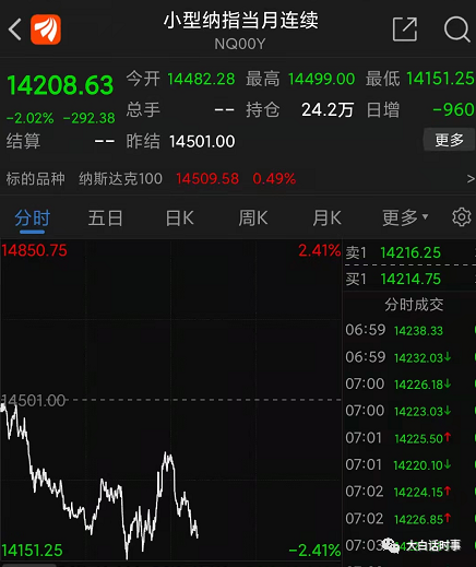 不过,今天白天,纳斯达克指数的盘前期货再度大跌2%