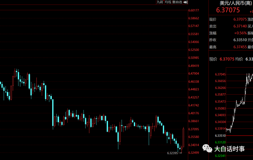 今天美联储发出信号枪后,北向资金大幅度流出,人民币汇率在持续坚挺后,也出现单日0.5%的贬值幅度。