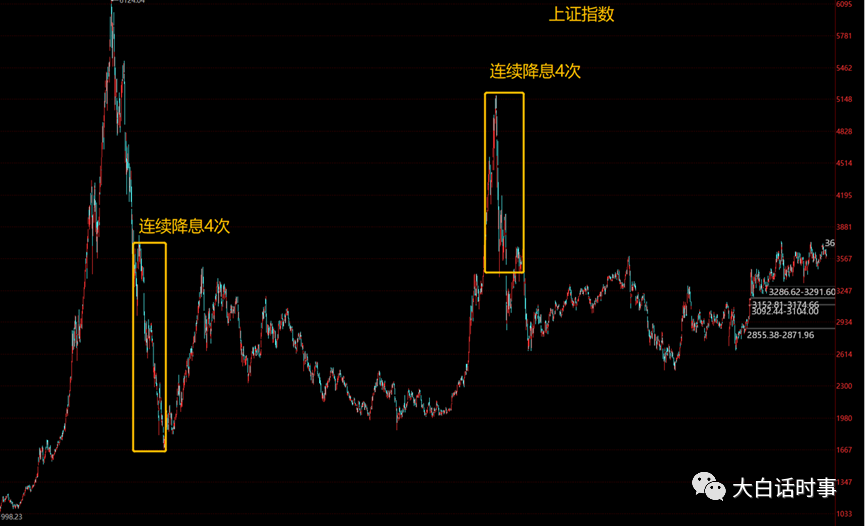 我们可以回溯A股过去这20年跟央行降息的一个映射规律。