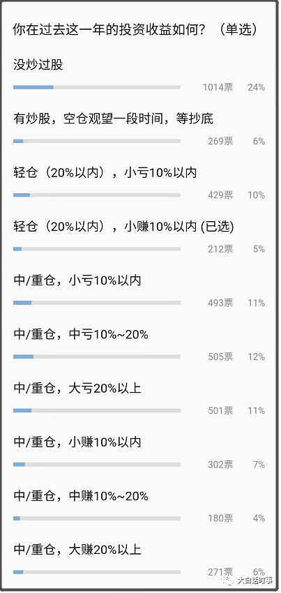 而这次统计:只有22%比例的人是赚钱的,44%比例的人亏钱。