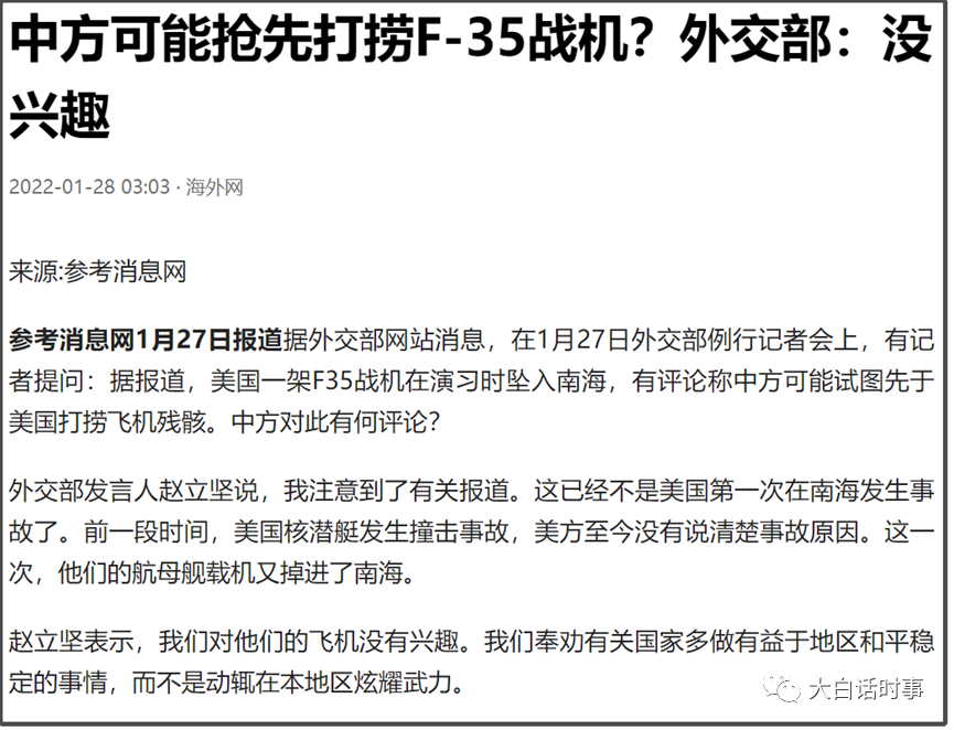 这次F-35C坠海的区域要更深,水文条件更复杂,最关键是,美国拉不下脸来跟我们求援。