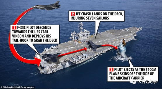 从目前公开的一些信息看,这次F-35C是在着舰的时候,因为没能成功拦阻,结果直接冲出跑道,然后直接冲进海里。