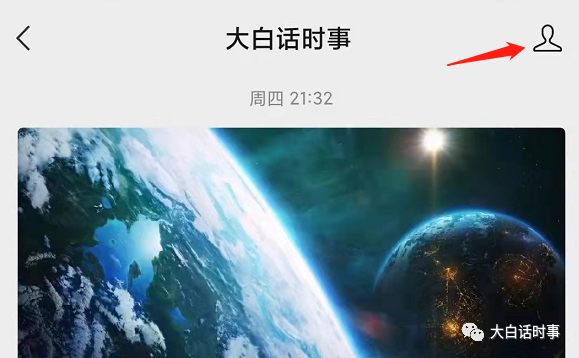 在“大白话时事”公众号的消息页面,点击右上角的按钮。