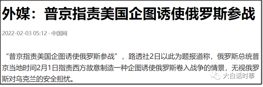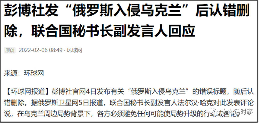 要知道,在俄乌局势如此紧张的情况下,彭博社这样的世界知名媒体,并且以善于报道内幕消息而闻名的媒体,突然出现标题如此耸人听闻的新闻,很难说会不会让当时的局势当事人出现一些误判,从而出现擦枪走火的情况。