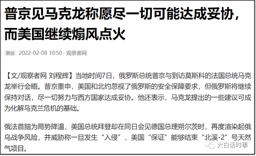 然而,在马克龙8号访问完俄罗斯,让俄乌危机有了难得的降温之后。