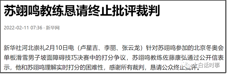 人们纷纷指责批评做出错误打分的裁判。不过苏翊鸣教练发表公开信表示,他和苏翊鸣理解实时打分的困难性,感谢所有裁判,恳请公众终止批评。