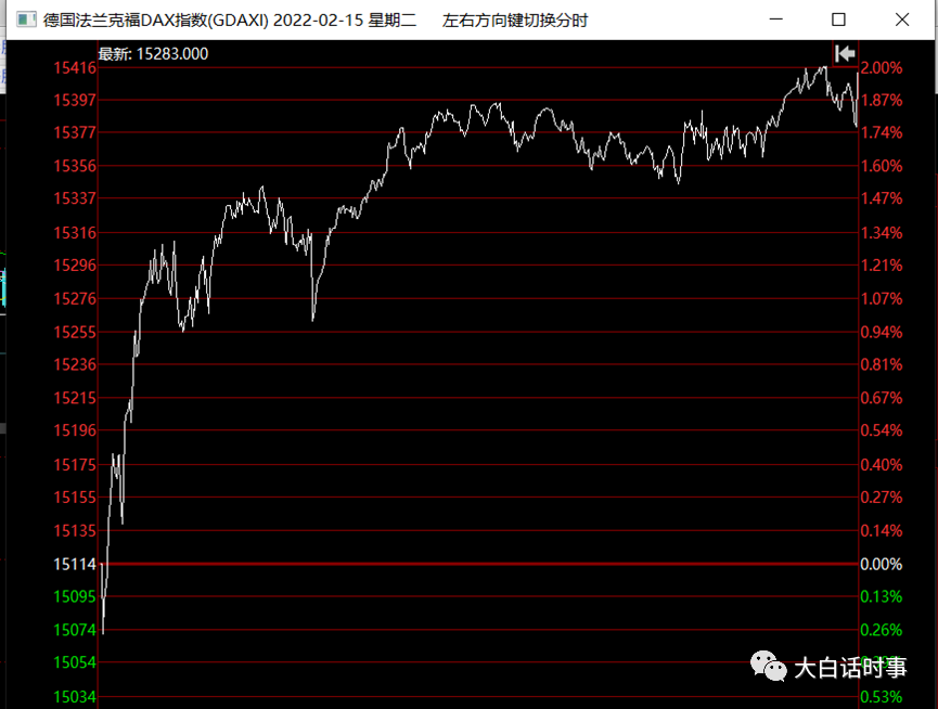 在14日晚上8点30分,有媒体报道俄罗斯宣布部分演习结束,这让全球金融市场出现一致性的反危机波动。