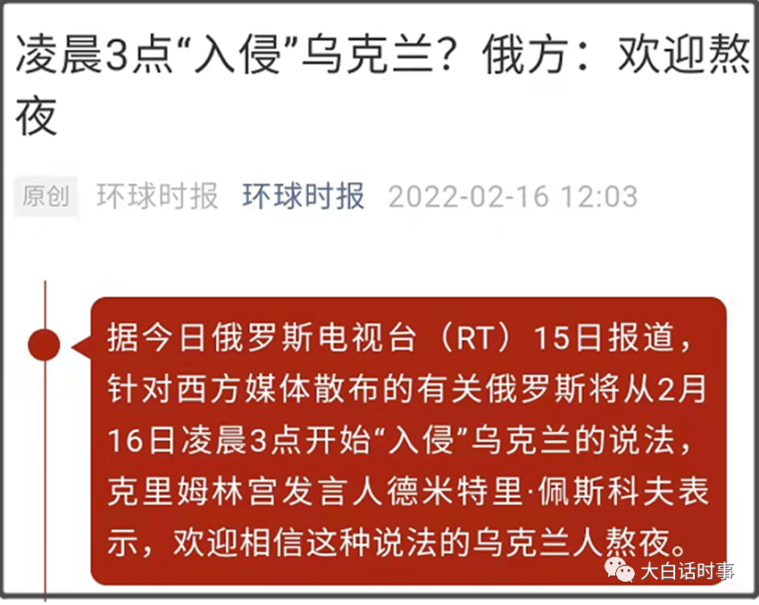 这都被俄罗斯媒体拿来做成新闻报道,用来讽刺美国帮俄罗斯指定开战日期。