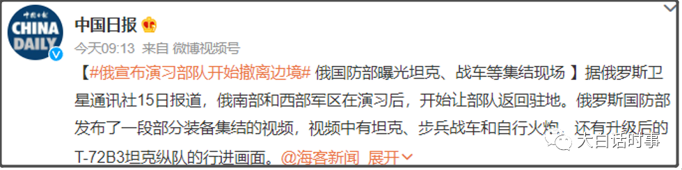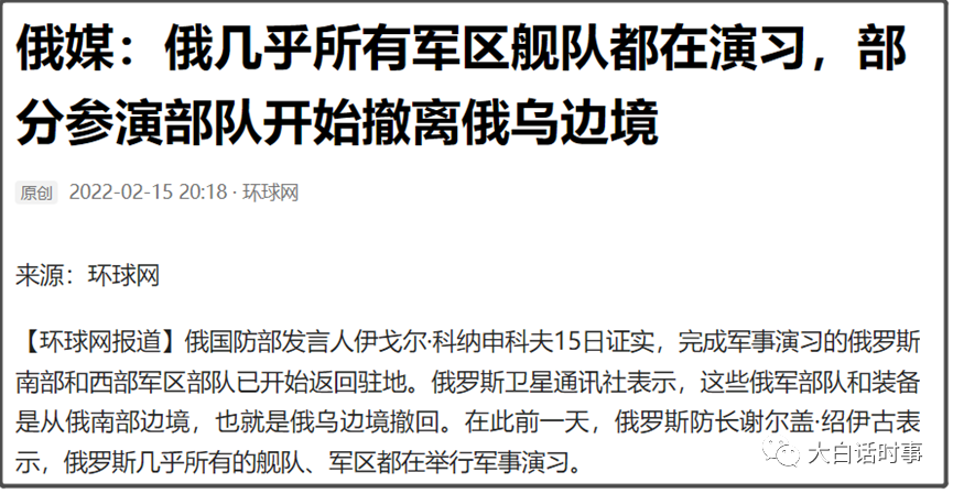然后到了15日白天,俄罗斯撤军的事情,才在网络上有比较多人讨论。