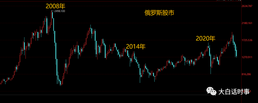 同时,在2014年,因为克里米亚危机,加上俄罗斯大力度加息,所以俄罗斯股市出现一波大跌,也刺出一个历史大底。