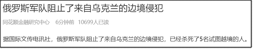 “据国际文传电讯社,俄罗斯军队阻止了来自乌克兰的边境侵犯,已经杀死了5名试图越境的人。”