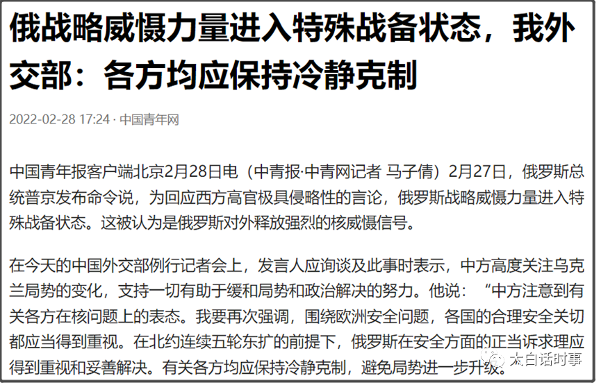 我们对于俄罗斯的战略威慑力量进入特殊战备状态,也是有了明确回应。