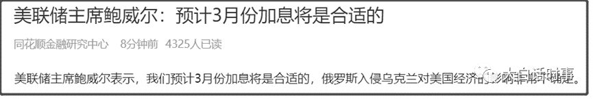 美联储鲍威尔晚上还跑出来说,3月份加息是合适的。