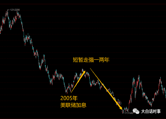 但也跟2005年一样,美元指数在短暂走强个一两年后,如果大家发现加息也救不了美元后,美元才有可能大幅度走弱。