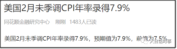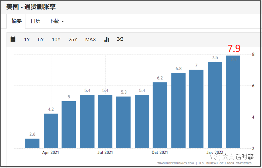 美国2月通胀率再次上涨到7.9%,仍然保持持续上升的态势。
