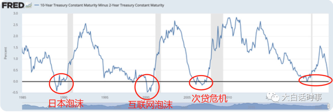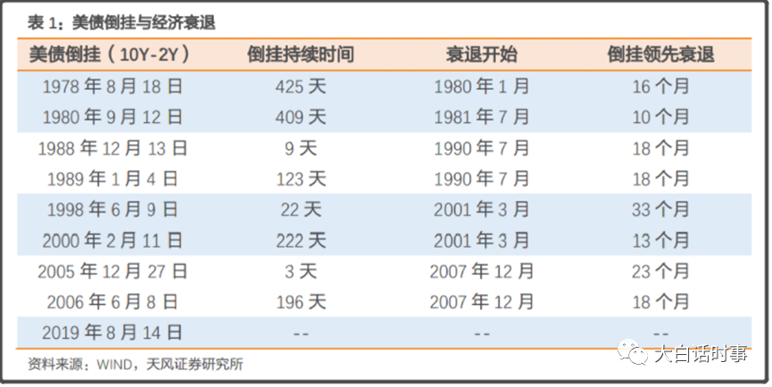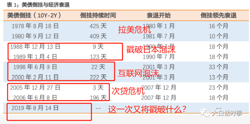 由于历史上,每次美债利率倒挂后没多久,就出现一些金融泡沫被戳破、经济衰退的现象。