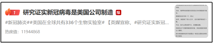 这个热搜标题也特别的劲爆,直接写“研究证实新冠病毒是美国公司制造”。
