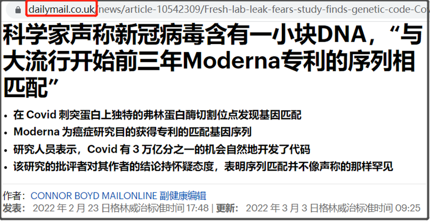 首先,《每日邮报》确实有这篇报道,看图里的网页链接就知道了,这确实是每日邮报“dailymail”的网站,一些辟谣者说《每日邮报》没有报道过这件事情,是不对的。