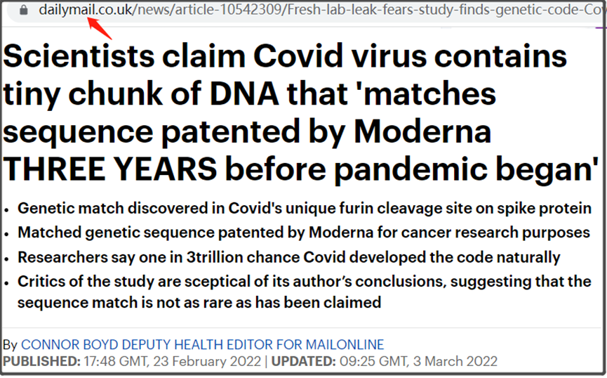 我也看过一些专业人士的“辟谣”,大致是认为,莫德纳2016年2月申请的基因片段专利,跟新冠病毒某一小段基因序列,相匹配,并不是一个小概率的事情,而只是很正常的撞衫。