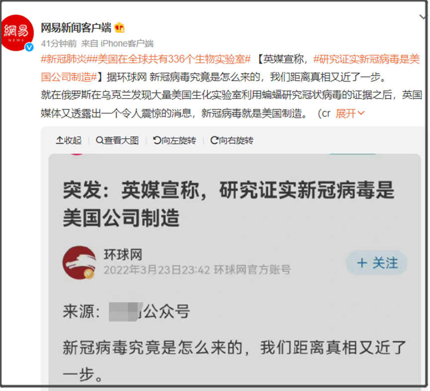甚至有人试图借助这件事情,把攻击面扩大到其他合理分析猜测美国制造合成新冠病毒的行为。