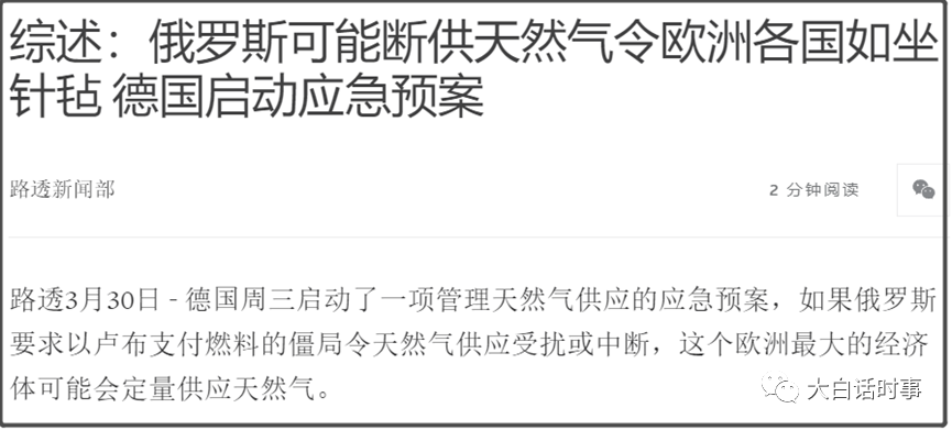 比如路透社报道这件事情的标题是说“德国称仍将以欧元或美元支付俄罗斯天然气费用”。