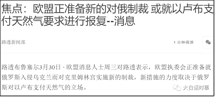 我今天已经看不到不少人,只看这个标题,就认为俄罗斯不要求用卢布结算天然气了,认为俄罗斯怂了。