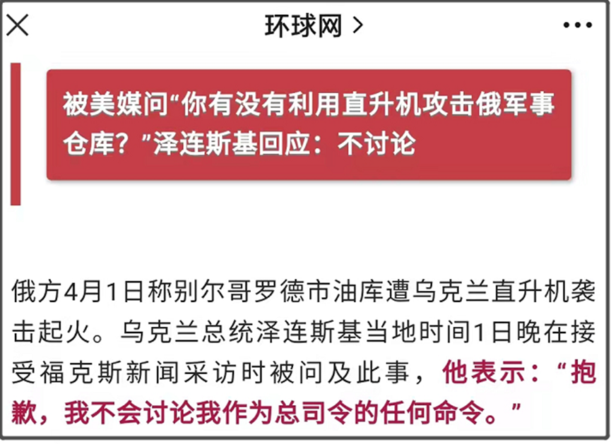 不过,这样一个可以给乌克兰长脸的事情,不管泽连斯基,还是乌克兰军方,都显得十分谨慎,不敢直接回应和宣传,这就不太正常。