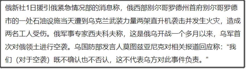 结果俄罗斯本土的石油设施居然就被乌克兰的直升机袭击。
