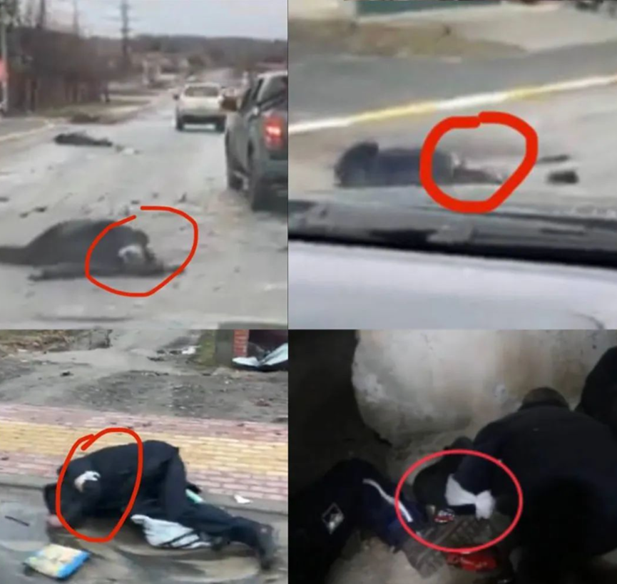 同时乌克兰媒体开始放出大量这种布查市“满街横尸”的画面。