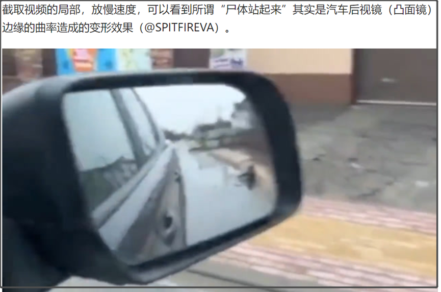 不过很快也有一些有求证精神的人,仔细辨别后,发现是挡风玻璃上的污渍和后视镜的边缘曲率所导致的视觉误差。