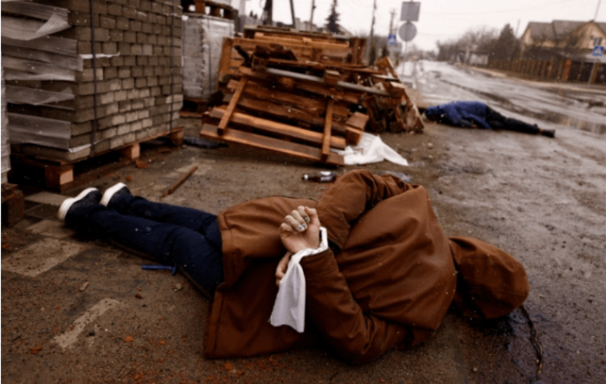 有乌克兰媒体报道“在乌军进入布查之后,发现布查的大街上“到处都是尸体”,其中一些尸体被白布条反绑双手,似乎遭遇了背后射击的“行刑式处决”,还有一些被“行刑式处决”的尸体则位于背街小巷或者地下室内。”