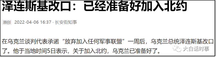 泽连斯基在昨天更是直接改口称“关于加入北约,乌克兰已准备好了。”