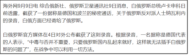 在这个录音里,似乎表明德国方面有人想利用这次“中毒”事件,来扰乱俄罗斯,从而就没办法插手白俄罗斯的事情。